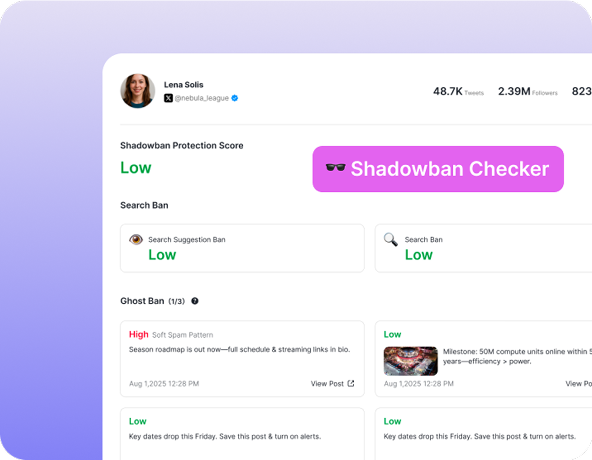 Check your shadowban status in seconds — no login, no setup, no stress.